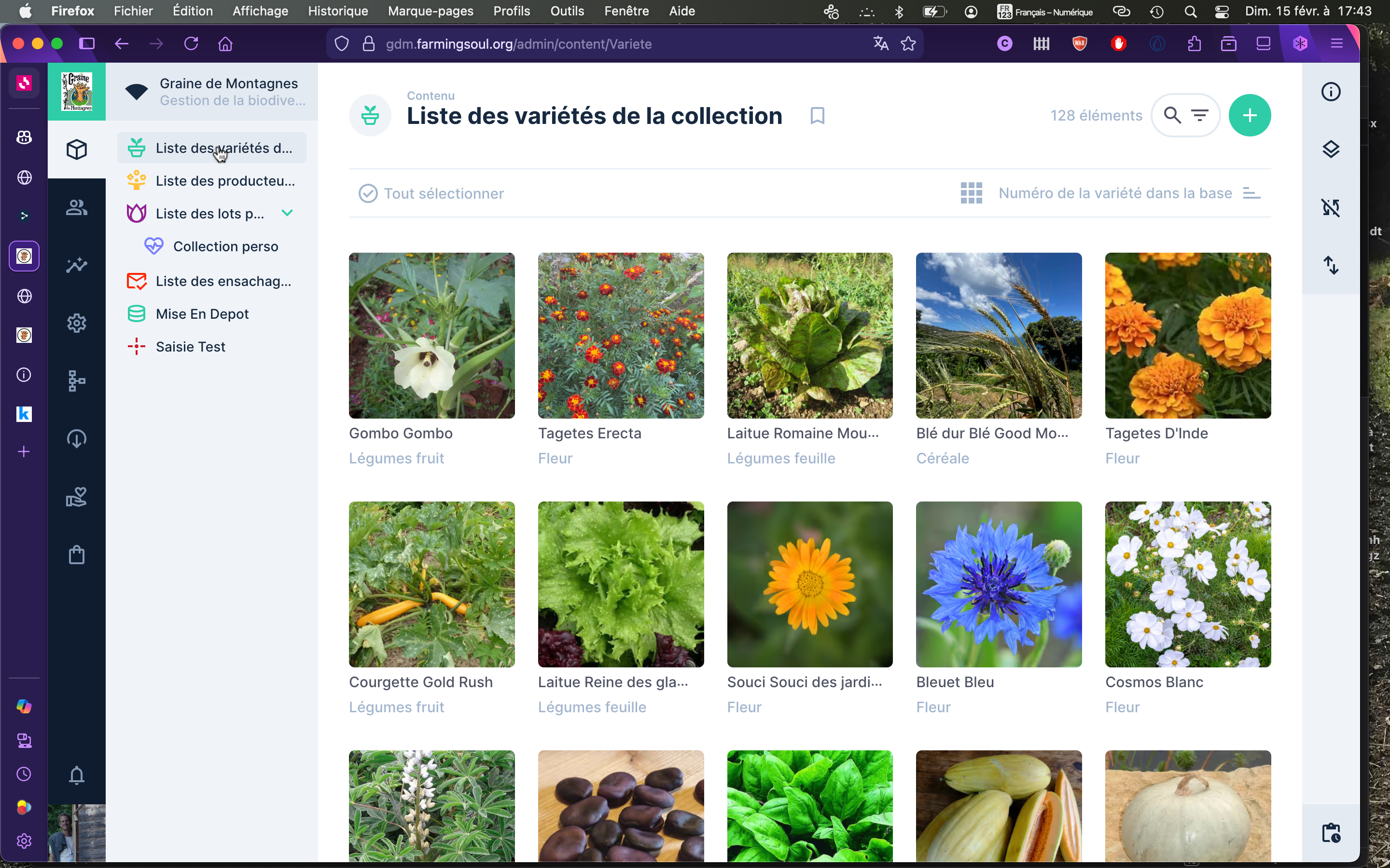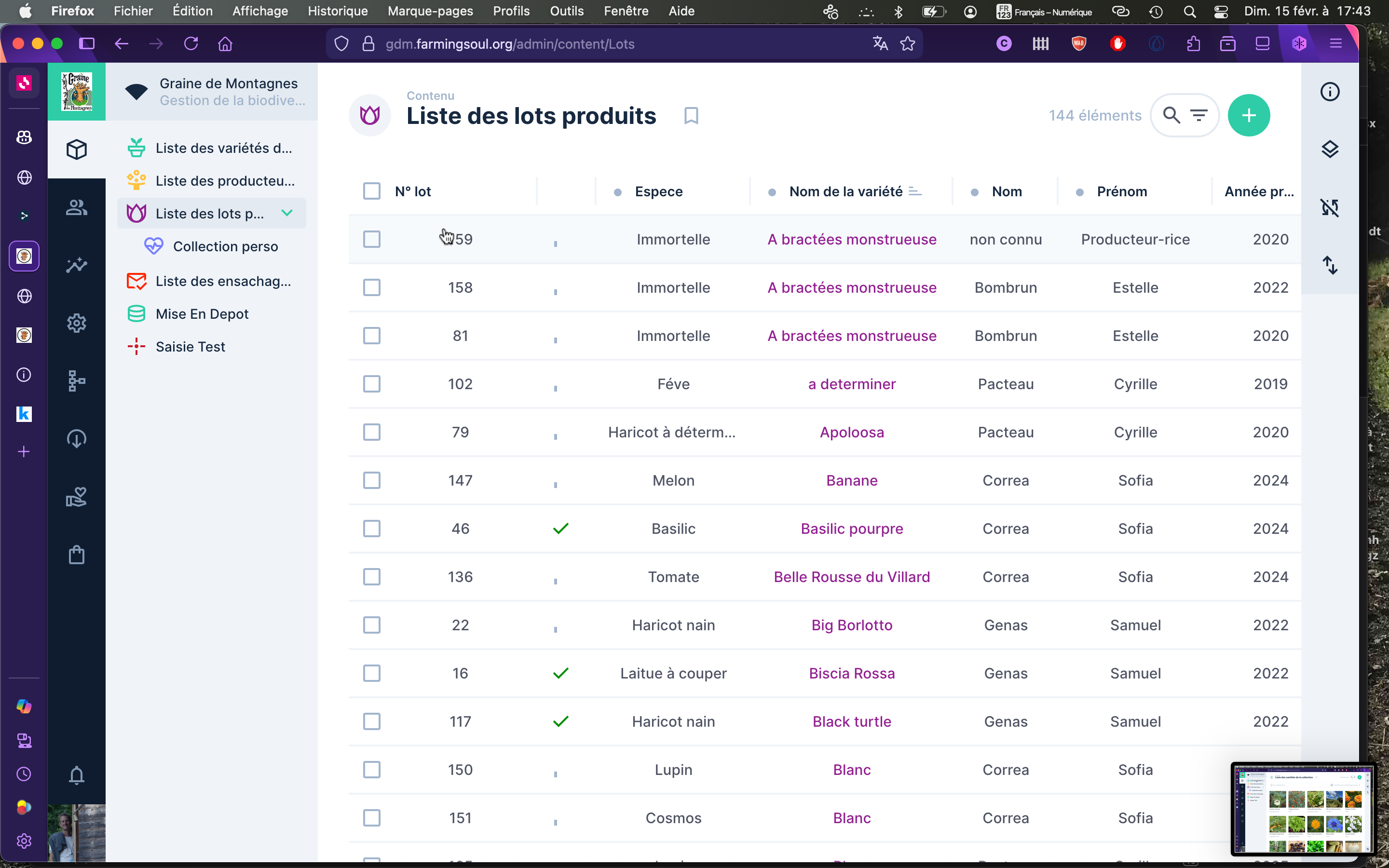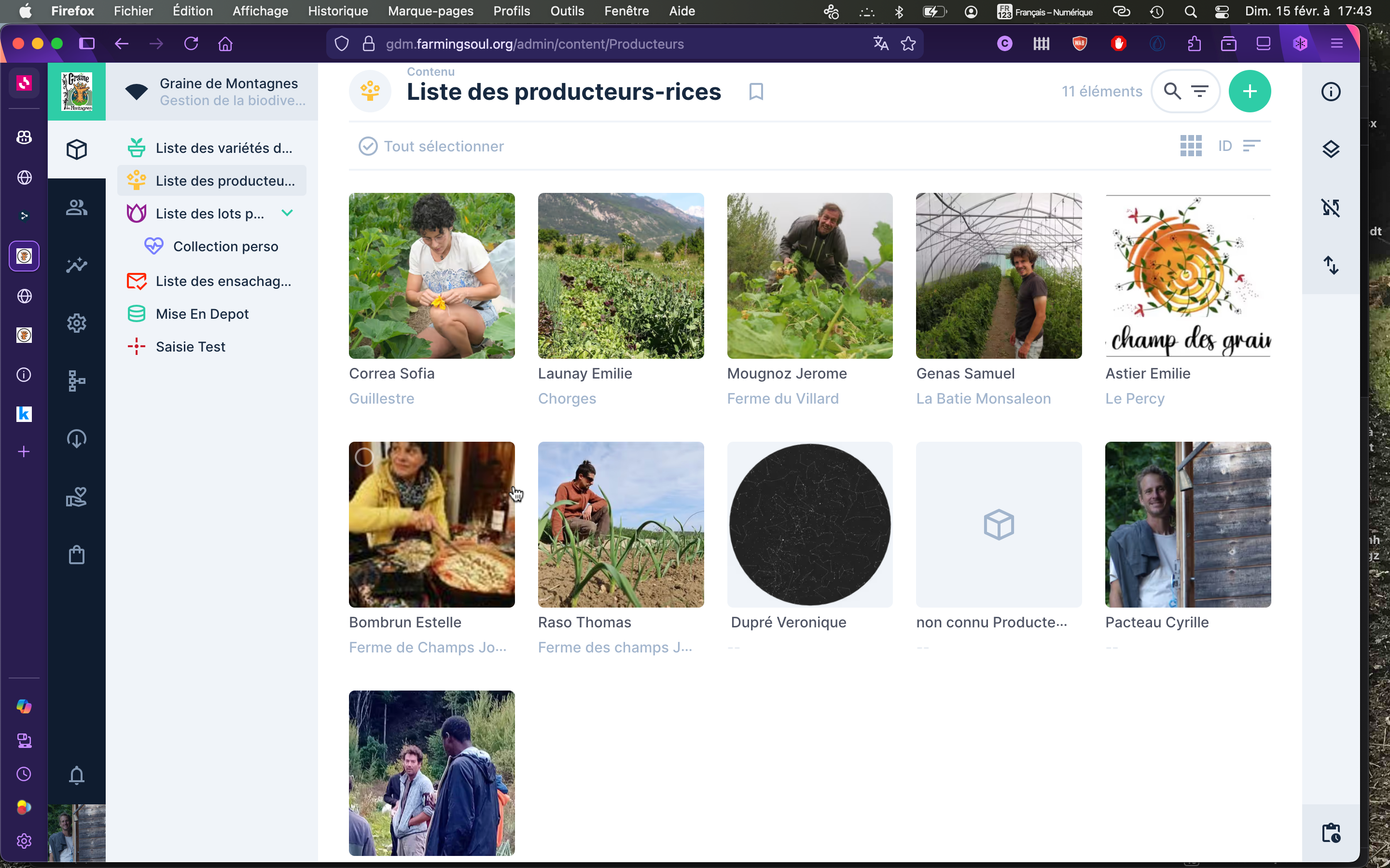 Graine des Montagnes France Hautes Alpes Variétéés disponible cature d'écrans Producteurs-rices, variétés, lots